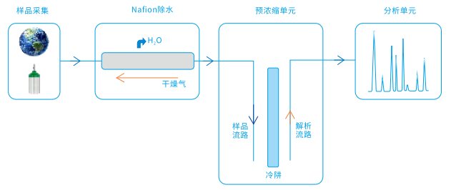 樣氣采集單元:主要由標準化的大氣采樣總管、伴熱惰性化管路、流量控制、除塵等組成,實現樣氣的無損傳輸。