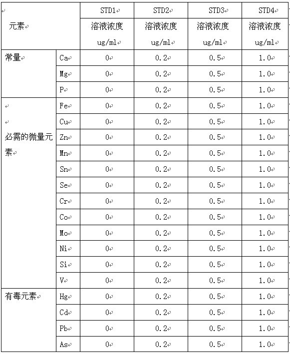 用1000ug/ml 的單標準貯存溶液逐級配制成 100ug/ml溶液,再逐級配制成混合標準溶液10μg/ml、1μg/ml酸度為10%(V/V)。