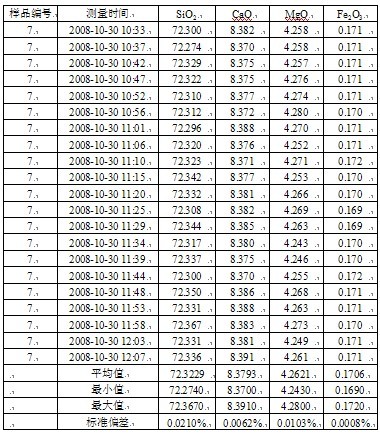 標樣:建材院玻璃所自制標樣(僅有常規測量的四種元素)